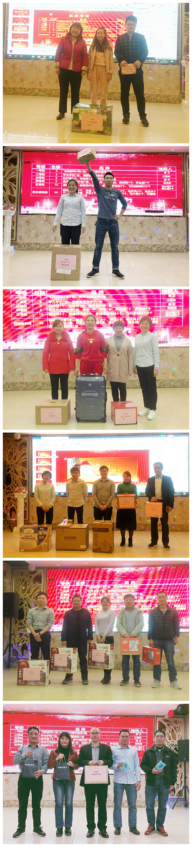 晚宴活动中有精彩的节目表演和有趣的小游戏,在抽奖不断的进行中晚宴活动进入了高潮,天河会场先后产生了三等奖5名,二等建3名,一等奖1名,特等奖1名以及最后的加码红包5名。黄埔会场产生了一等奖2名,二等奖2名,三等奖3名,四等奖5名,五等奖10名。